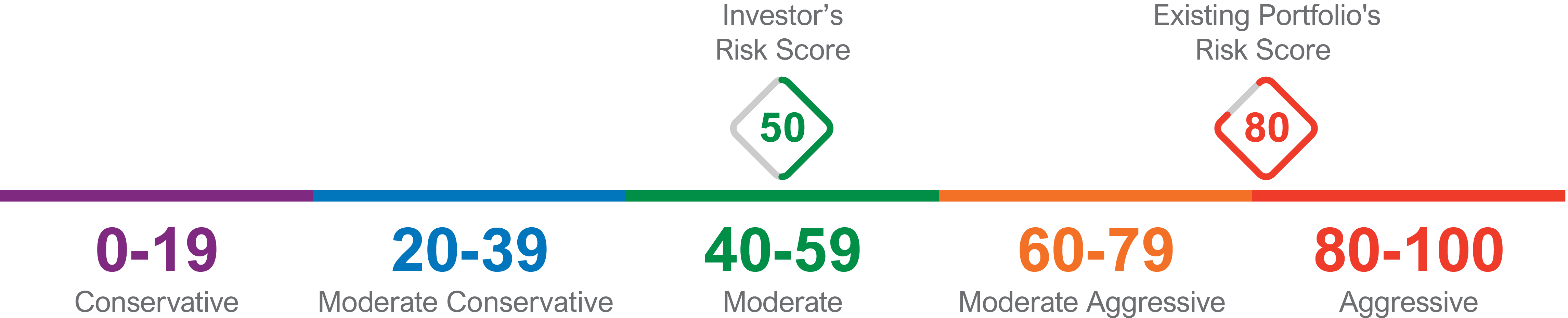 To help investors understand their risk threshold we deploy a proprietary algorithm rooted in the well-known Value at Risk (VaR) measurement that helps us quantify their sentiment toward financial uncertainty, specifically their emotional tolerance with respect to the magnitude and speed of potential investment loss. This Analysis provides them with a VaR Score that can help determine if their existing portfolio aligns with their risk tolerance.